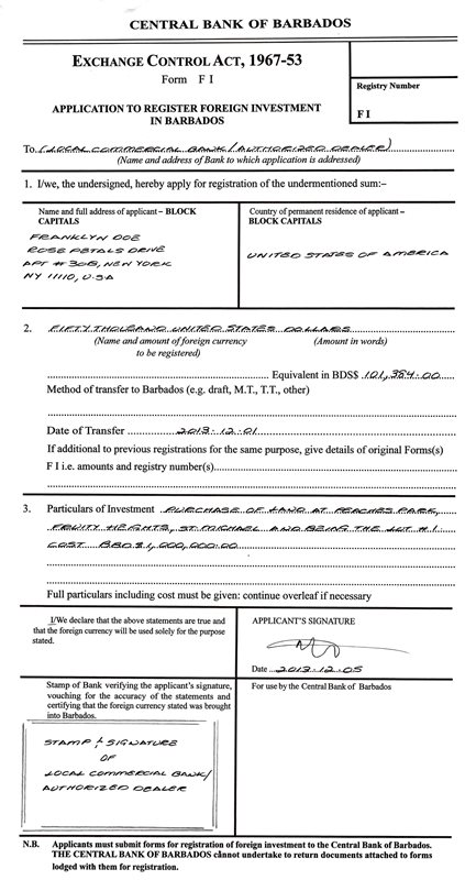 Application to Register Foreign Investment in Barbados